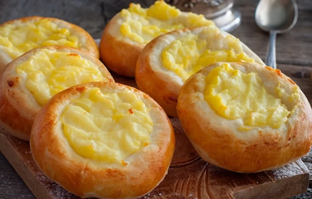 Чтобы приготовить эти лепёшечки, надо для начала в разогретое молоко добавить воду, сахар и дрожжи, перемешать. Затем добавить сметану, соль и растительное масло, муку и также хорошо перемешать, пока не получится тесто. Накрыть его полотенцем и оставить подниматься на час, несколько раз обминая его.