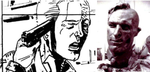 Создатели картины хотели удивить зрителей, поэтому до самой премьеры нигде не показывали изуродованного Харви. Образ героя создавался в несколько этапов. Сначала нарисовали эскиз, затем вылепили макет из глины, но он тоже был черновой. Раны, которые постановщик и продюсеры хотели видеть на экране были настолько глубоки, что невозможно было их показать с помощью грима или протезов. Поэтому решили воспользоваться спецэффектами, и доверили ответственную задачу супервайзеру визуальных эффектов Нику Дэвису. Под его контролем специалисты «удалили» кожу с лица цифровым способом. Благодаря этому появилась возможность показать сухожилия, обратную сторону щек и глазниц, создать уникальные текстуры.