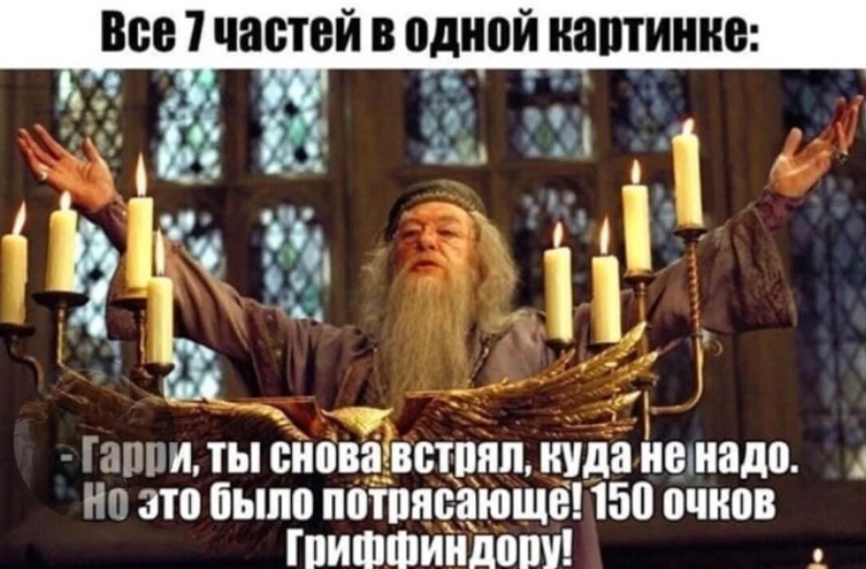 Дамблдор: «Хогвартс — это школа, где ко всем относятся одинаково. Кстати, Гарри, классные очки. 50 очков Гриффиндору!»